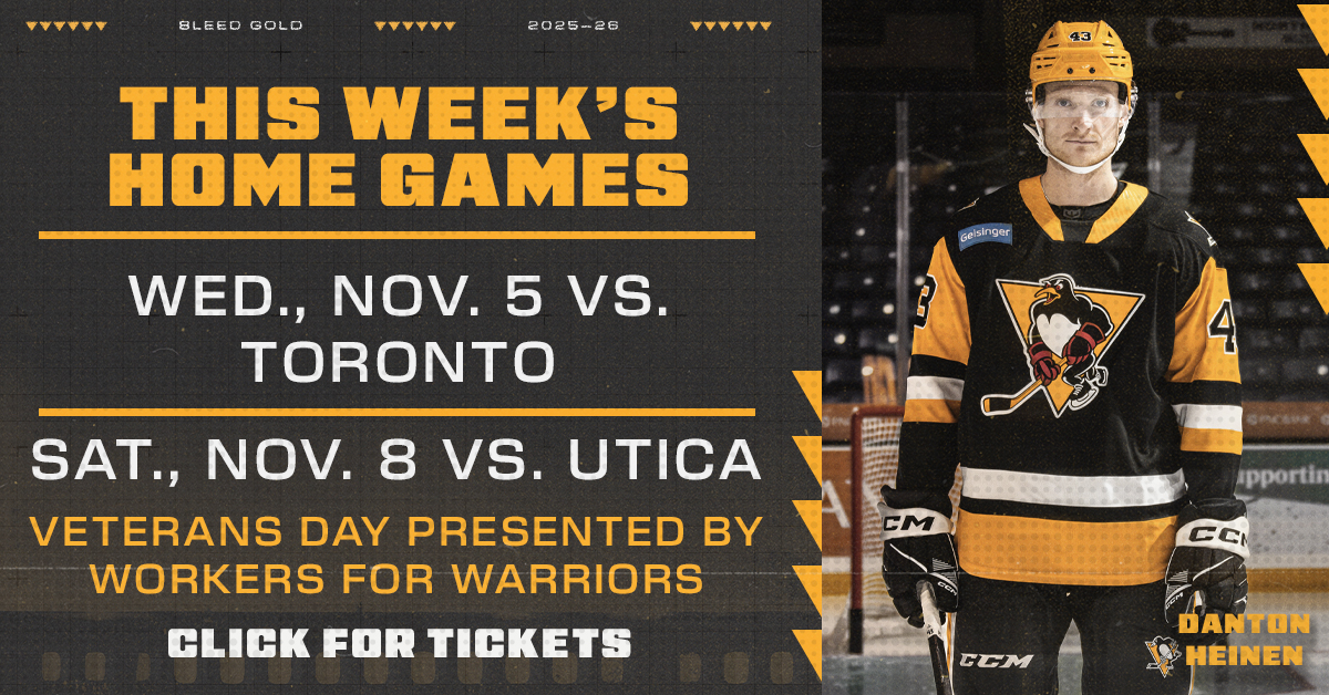 Penguins enter week full of North Division foes Wilkes-Barre/Scranton (8-2-0-0) remains Eastβs top defense...