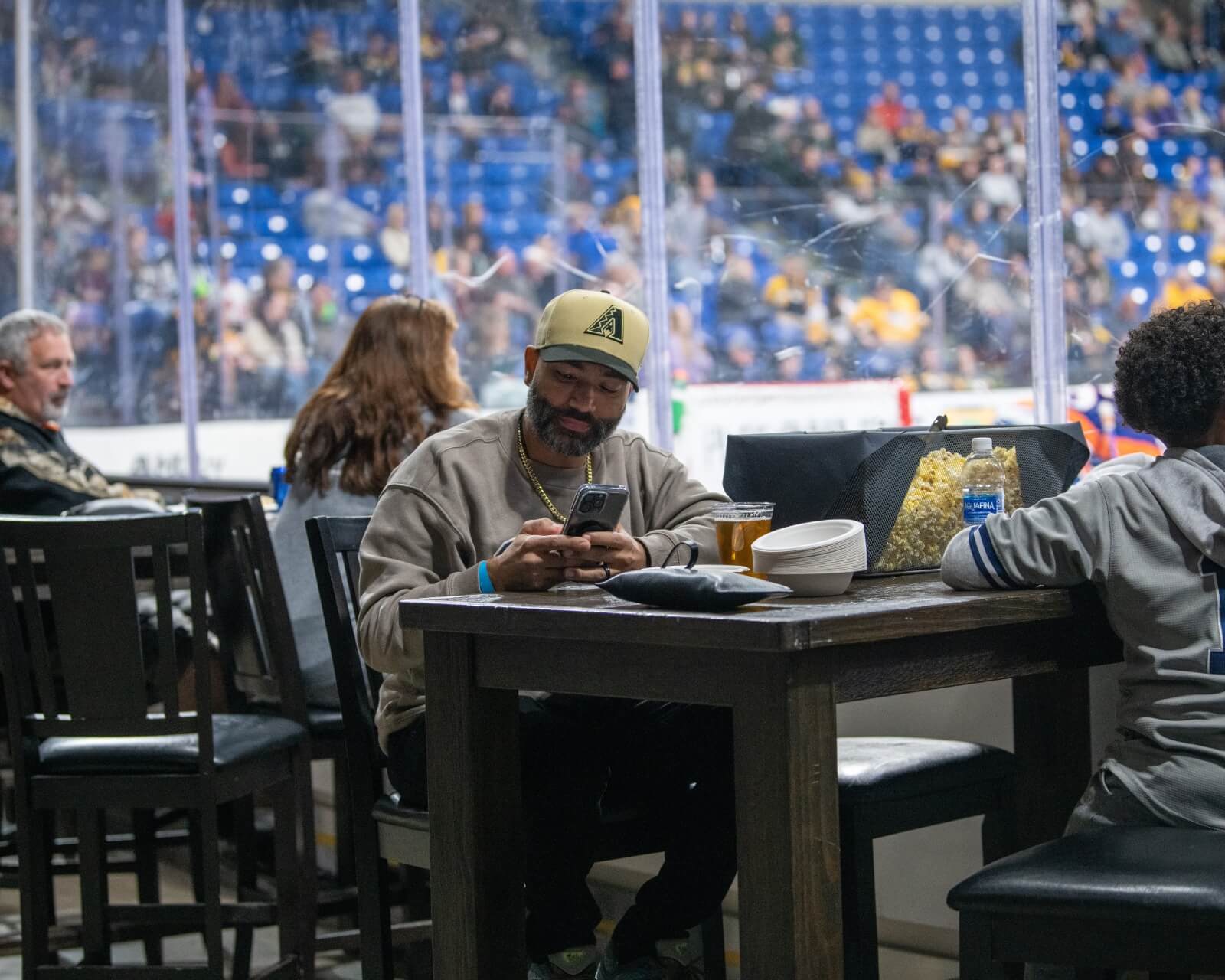 Every ticket to the Ice Level Lounges includes an all-you-can-eat food package (limited to select food items), direct access to a cash bar, and a vantage point on the glass behind the north end goal that puts you right in the game!