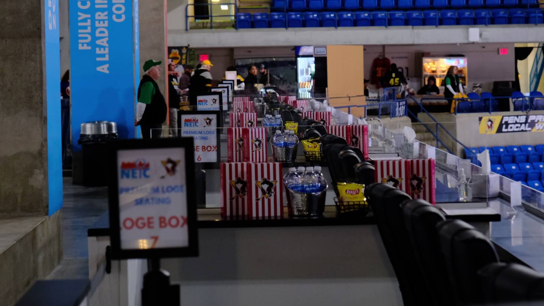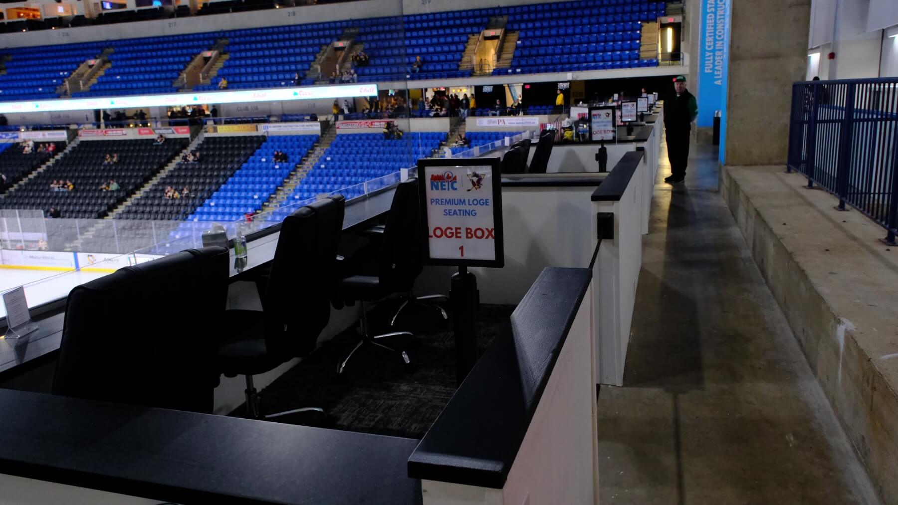 The Northeast Inspection Consultants Loge Box section features seven carefully designed premium boxes that redefine arena seating. Six four-person boxes and one six-person box provide intimate settings where you can enjoy the game with family, friends, or colleagues while maintaining privacy and comfort.