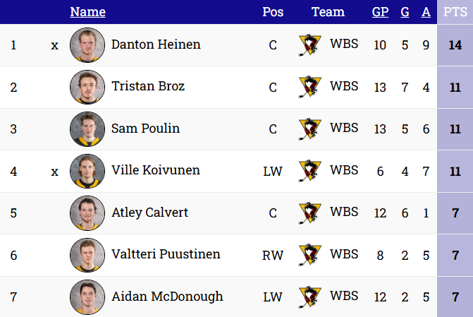– Tristan Broz has scored in each of the Penguins’ last three games, tied for the longest goal streak of his career.