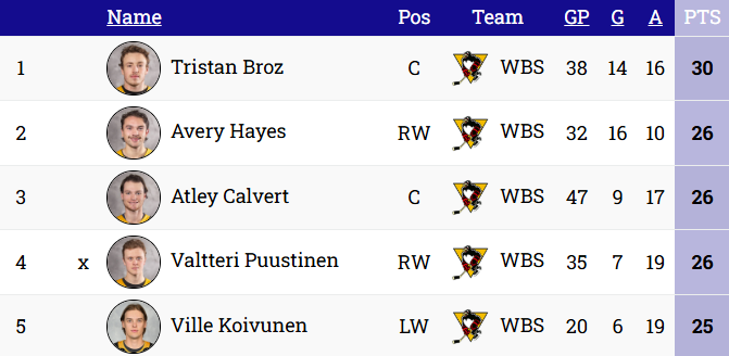 – Wilkes-Barre/Scranton went 8-1-1-0 (.850) in its last 10 games before the All-Star Break. Over the team’s five-game win streak, the Penguins have scored 24 goals, 4.80 per game.